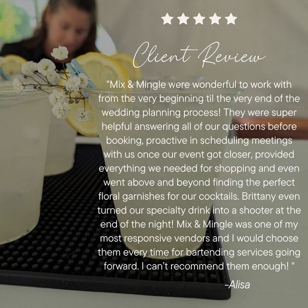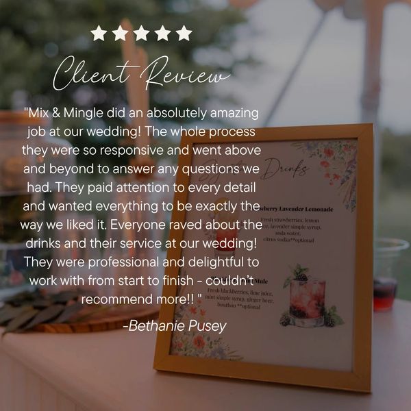 Mix & Mingle Mobile Bar Co offers timeless bar rentals, professional bartending services, and full-service craft cocktail experiences. The bar is the most visited place during any event, so it needs to SHINE! From every little detail that we put into the bar to every delicious cocktail served, we want it to be special. Most importantly, we want to help eliminate the stress of planning and executing bar service so that you can enjoy your event as much as your guests. We mix...you mingle!