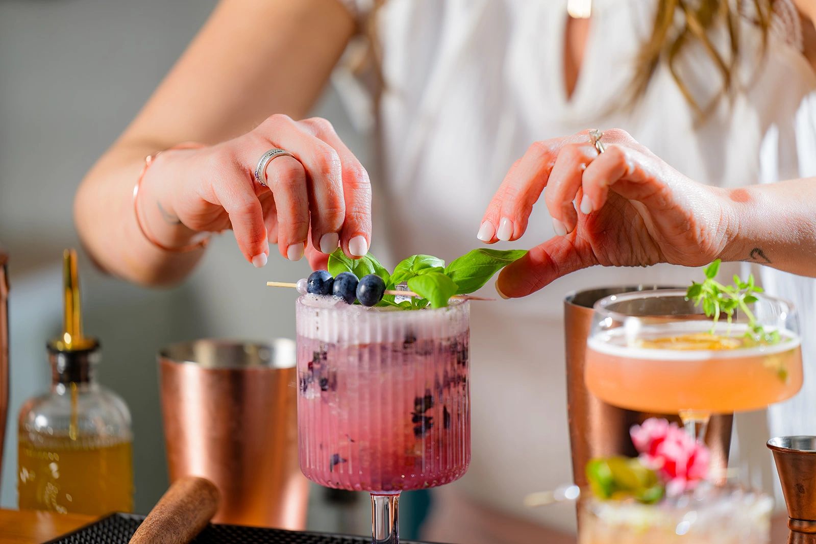 Literally everything else! We provide all the equipment and materials needed to make and serve drinks (cups, ice, mixers, garnishes, etc), our knowledge and expertise, insurance, mobile bar options, decor, an in-person or virtual consultation for personalized menu selection and alcohol ordering. PLUS, alcohol pick up and transport if needed. Oh and did I mention that we make all of our syrups in house with fresh ingredients? We do!