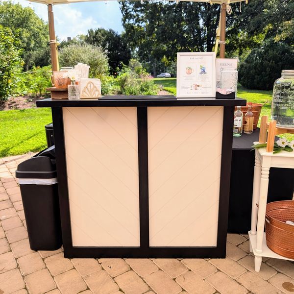 Our classic satellite bar option is great for indoor events, patios, poolside, or as an add-on to our trailer bar for large events. Pricing includes 40 miles of travel from Powhatan, bar equipment, ice chests, 2 certified bartenders, bar delivery, set-up, insurance, and customized menu display.